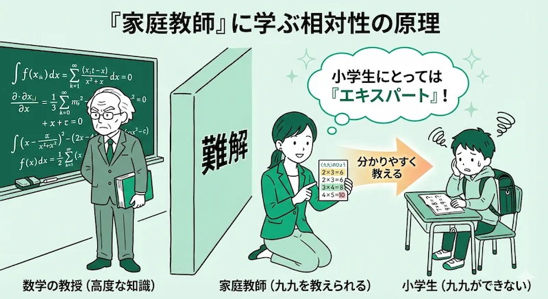 小学生(ターゲット)から見れば、九九ができるあなたは間違いなく「算数の先生(エキスパート)」です。