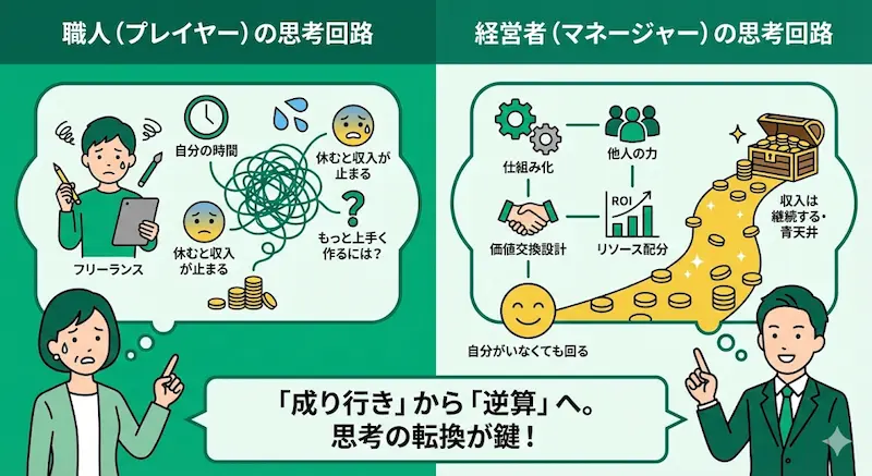 | 項目 | 職人(プレイヤー) | 経営者(マネージャー) |